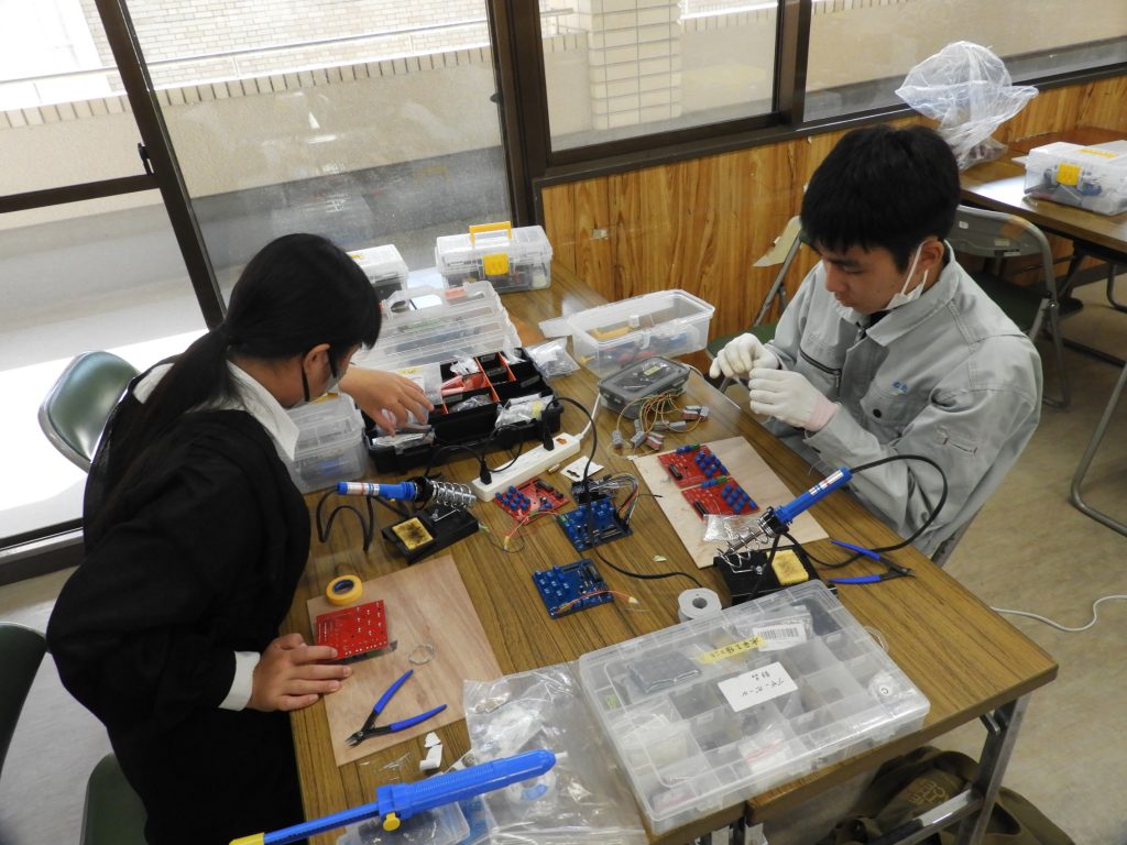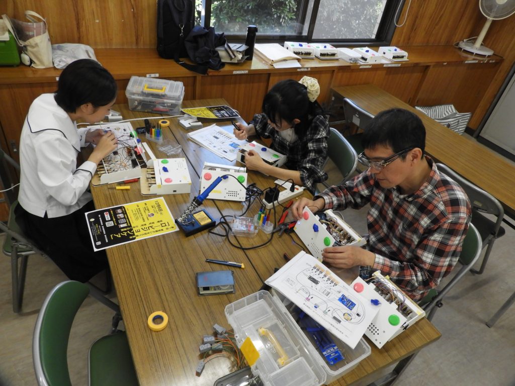 10月25日の市民製作ボランティア、これまで作りためて来た部品の組み合わせ作業が始まり、少しずつ形が見えるようになりました。音声が出たり、出荷の状況に近づいたり、一つ一つと命が吹き込まれていくようです。